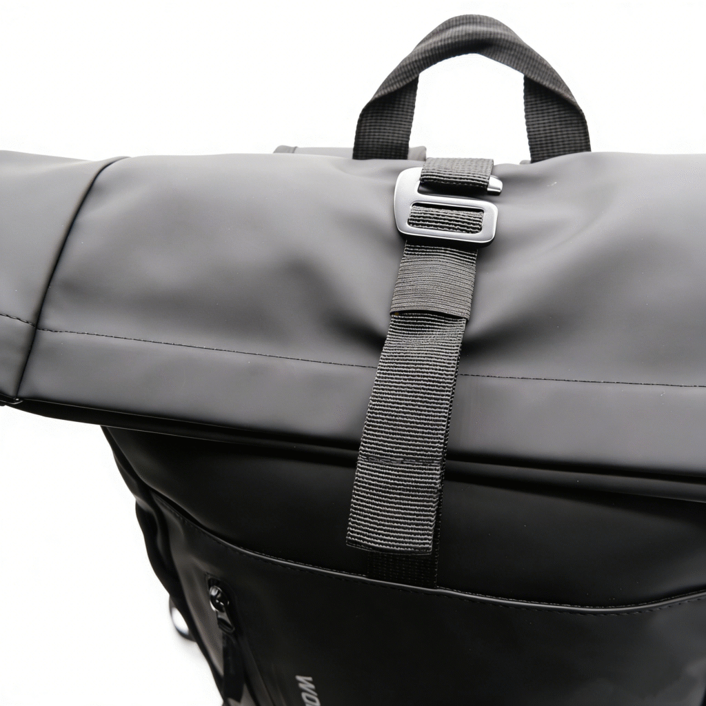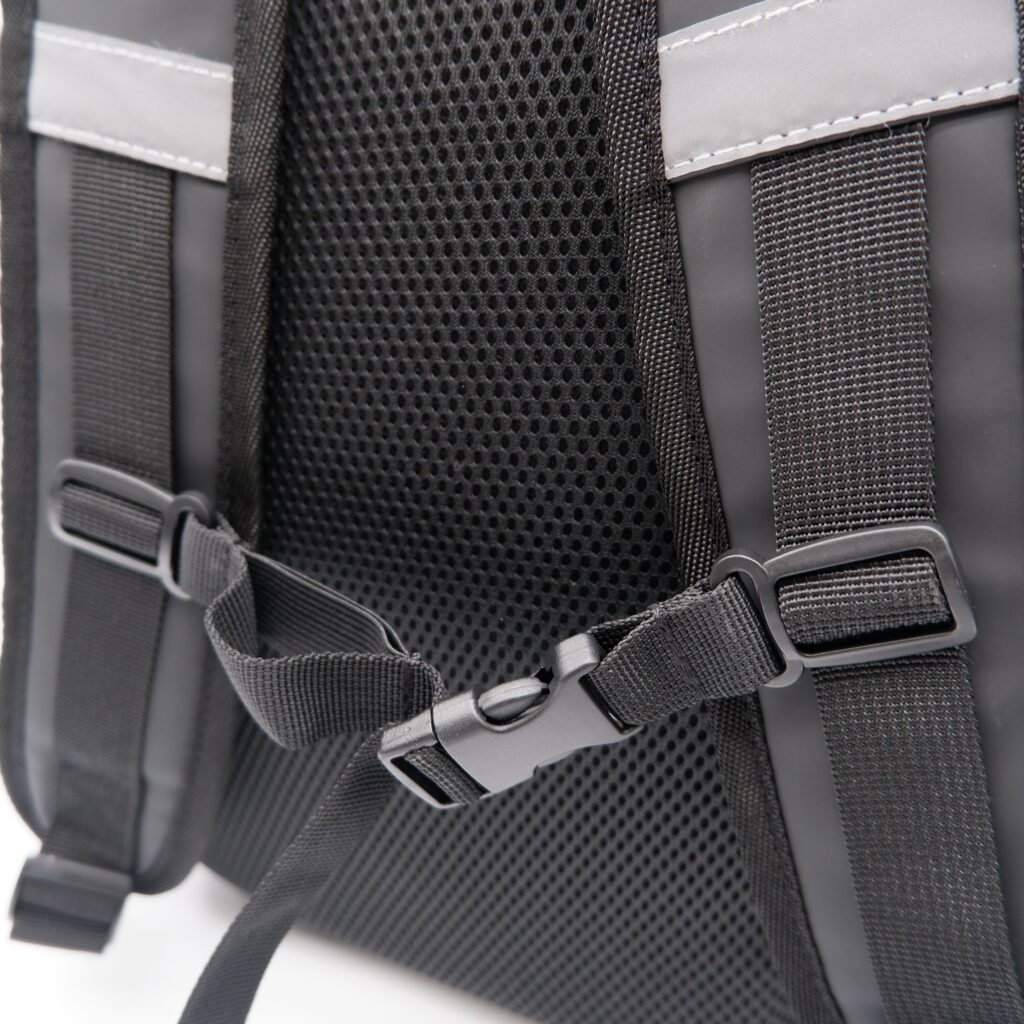 Padded shoulder straps relieve the strain on your shoulders, and the sliding chest straps help you balance the weight of the backpack and reduce the strain on your shoulders. In addition, the chest strap can help you stabilize the roll top backpacks on the back.