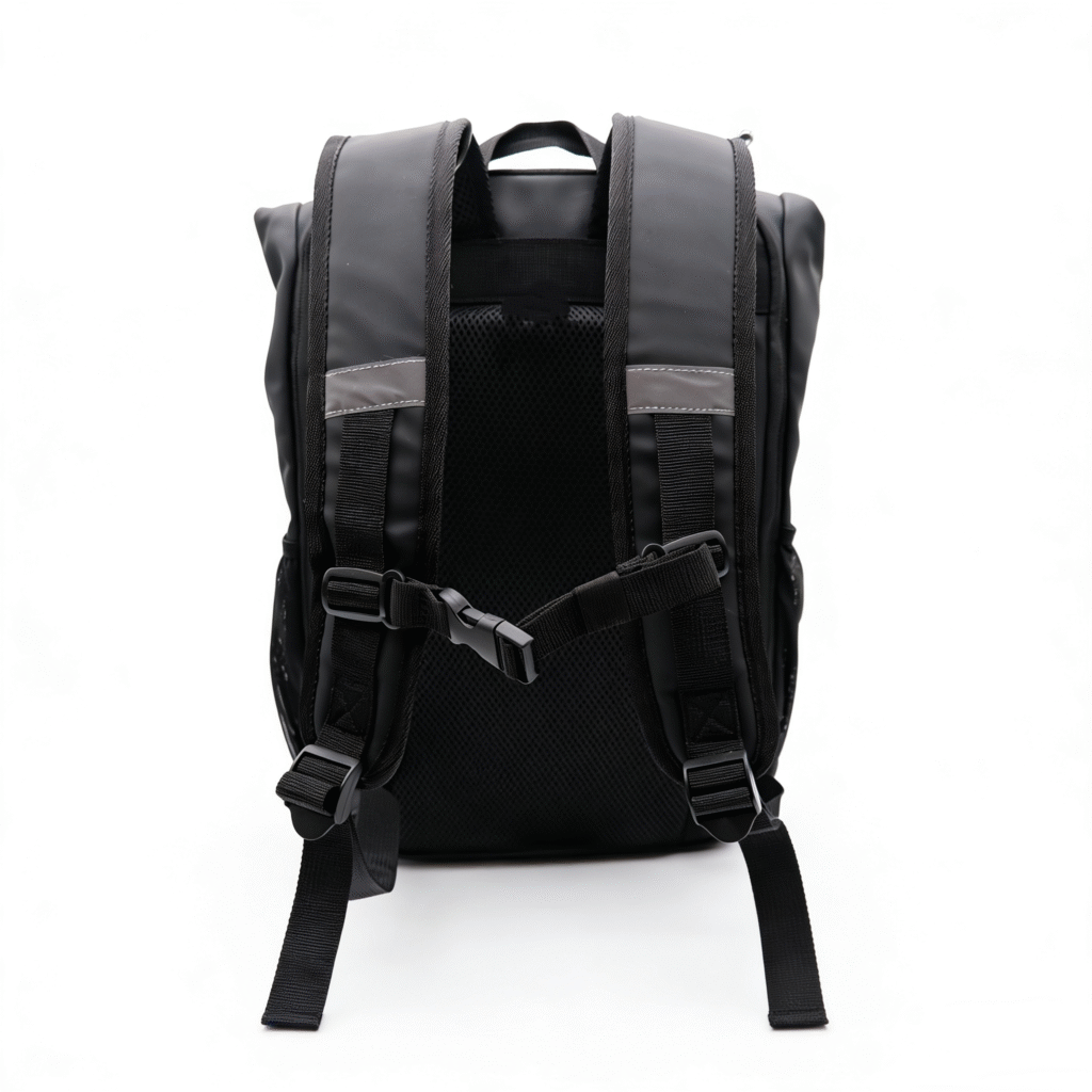 The backpack is lightweight, extremely robust and made of durable polyester. The two padded ergonomic shoulder straps, the breathable back panel and the height and length adjustable chest strap ensure a comfortable fit